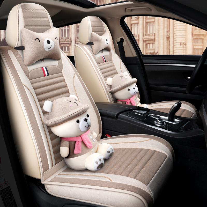 新款 通用卡通全包围亚麻布艺座椅套座套小车养生座垫 汽车坐垫四季