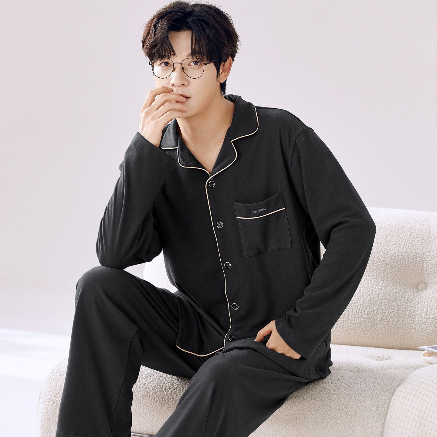 保暖珊瑚绒套装 春秋冬季 开衫 睡衣德绒长袖 简约法兰绒家居服 男士