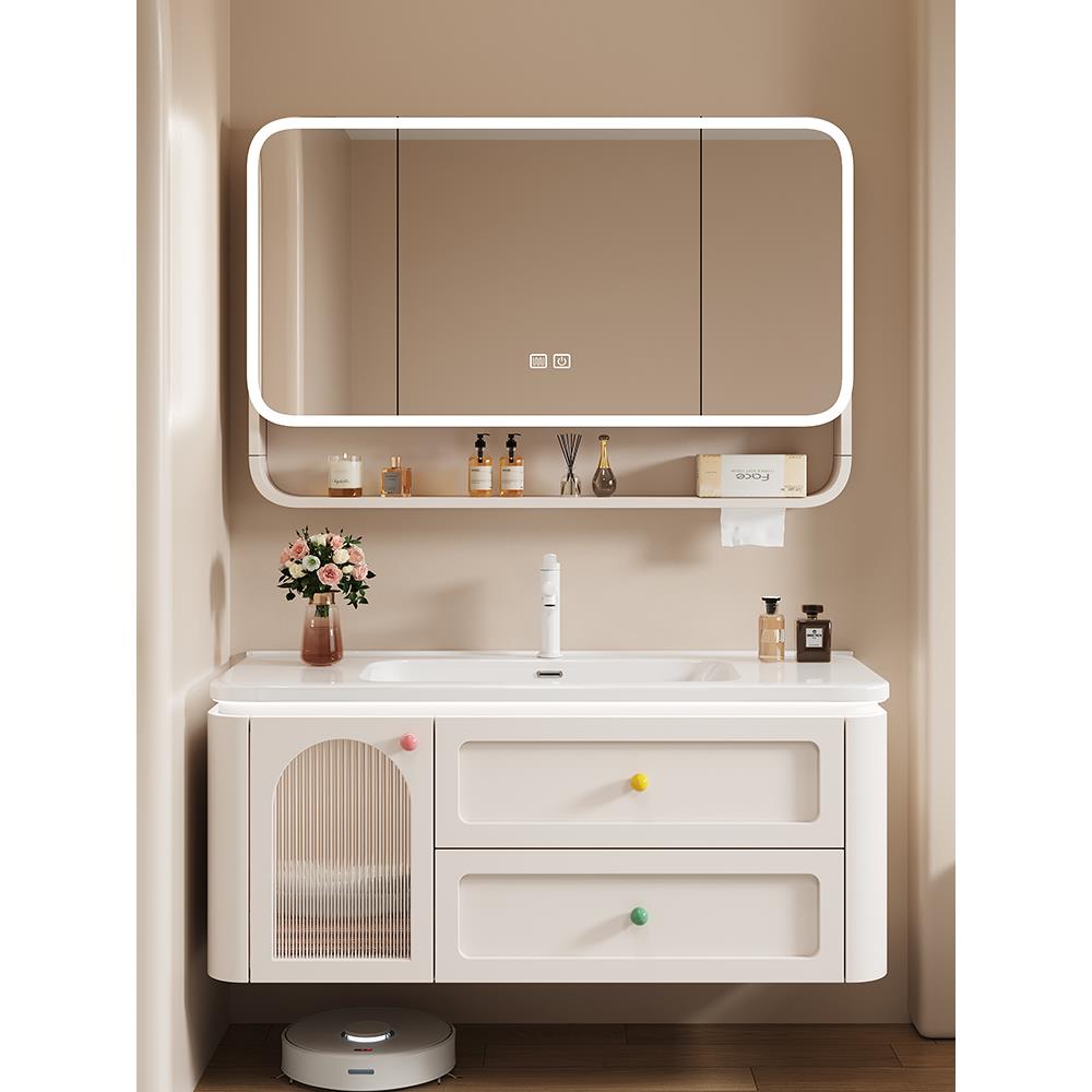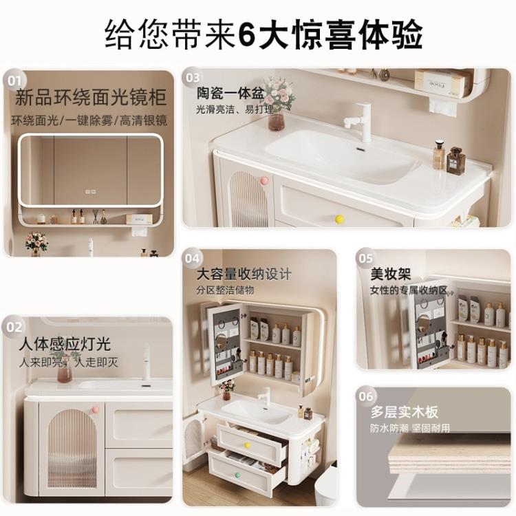 新款 多巴胺风实木侧边柜智能浴室柜卫生间陶瓷一体盆柜组合