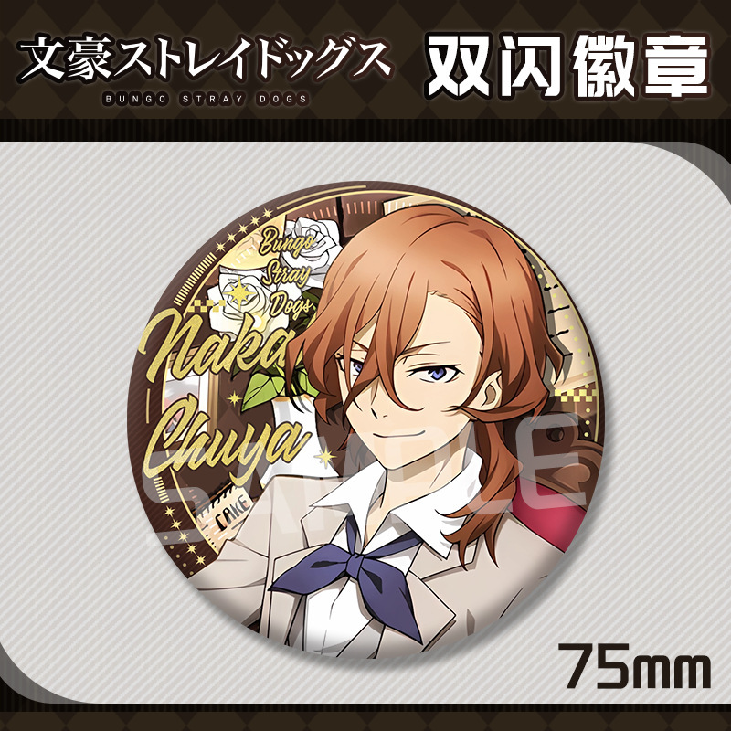 文豪野犬动漫周边谷子中原中也太宰治周边大徽章75mm双闪徽章吧唧