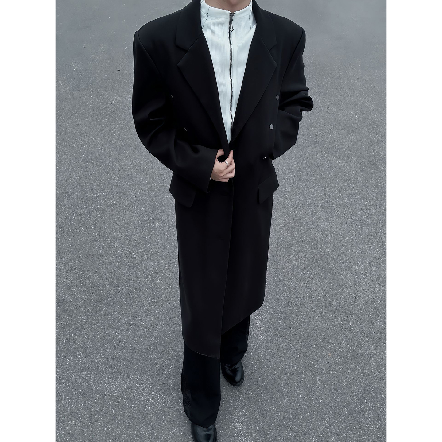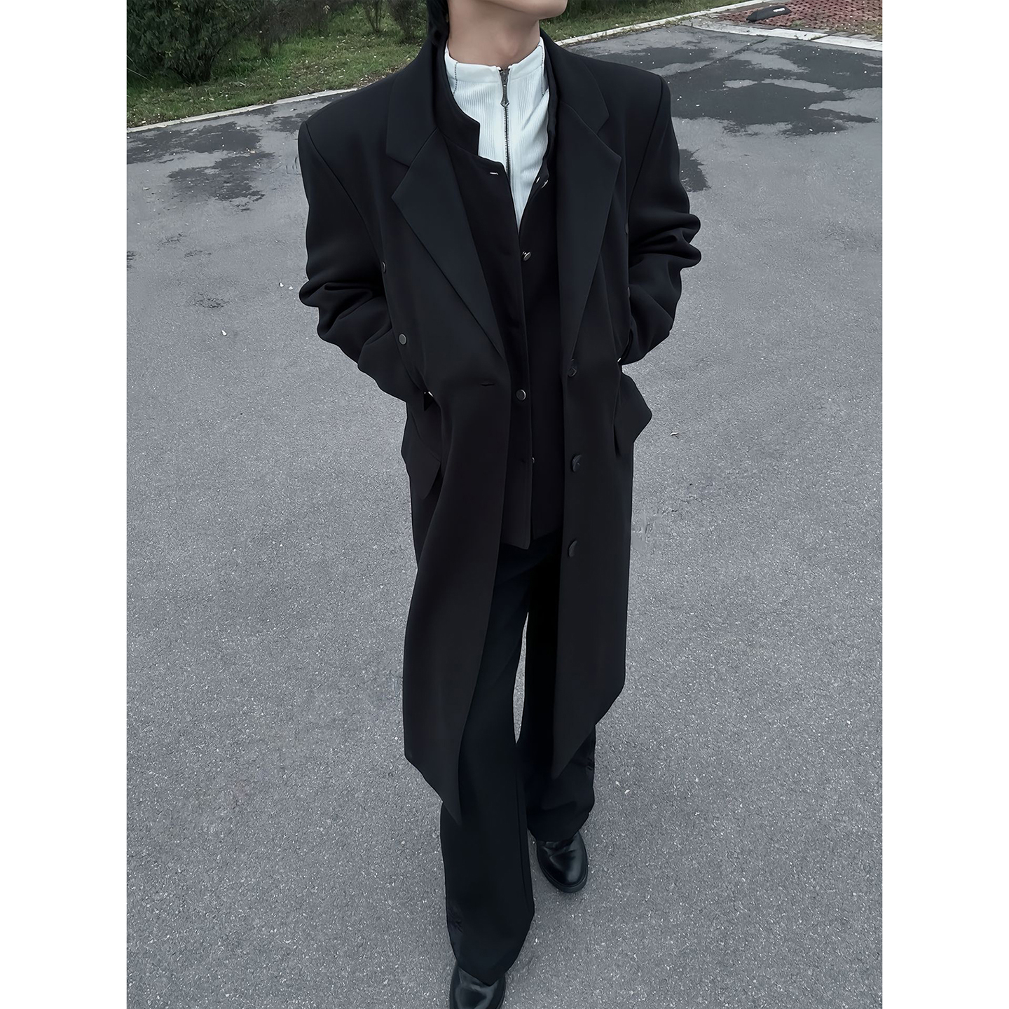 韩版 长款 呢子加厚风衣外套 2025春秋季 V37黑色高级感毛呢大衣男款