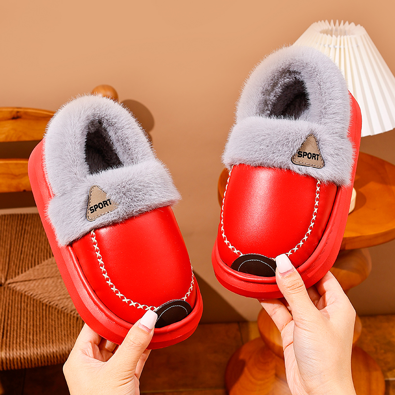 皮面室内居家外穿男女童棉鞋 亲子包跟棉拖鞋 防滑 2025新款 秋冬季