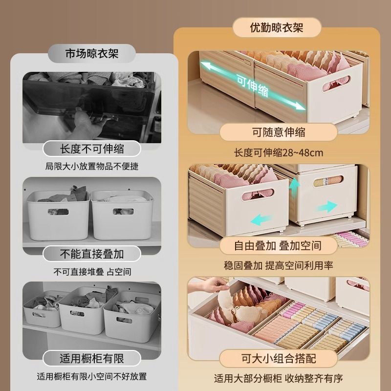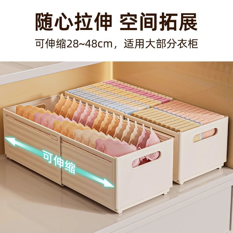 衣服裤 子收纳盒可伸缩衣柜收纳分层神器衣物收纳箱内衣整理盒抽屉