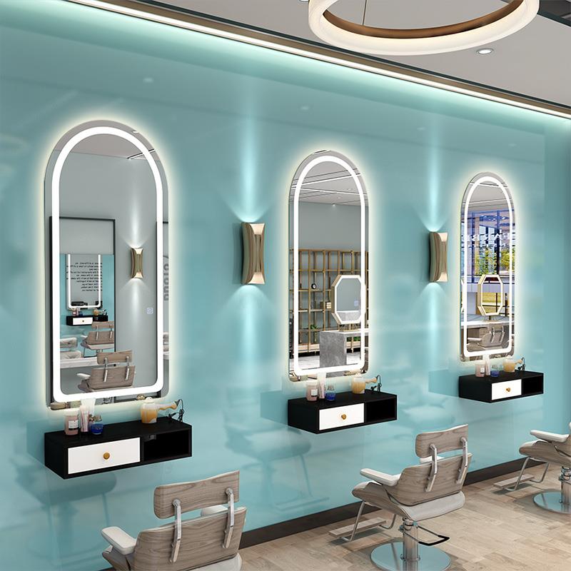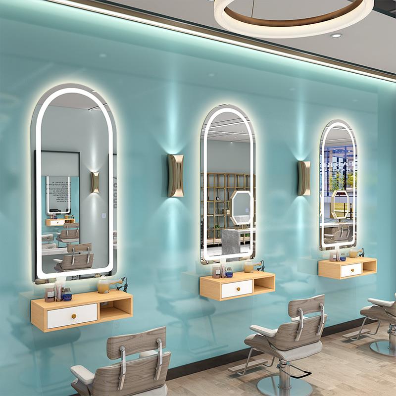 理发店镜台美发店镜子发廊专用LED带灯网红挂墙染烫美容镜子潮款