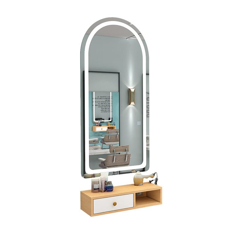 高端网红理发店镜子发廊专用镜台简约挂墙剪发镜落地镜台椭圆镜子