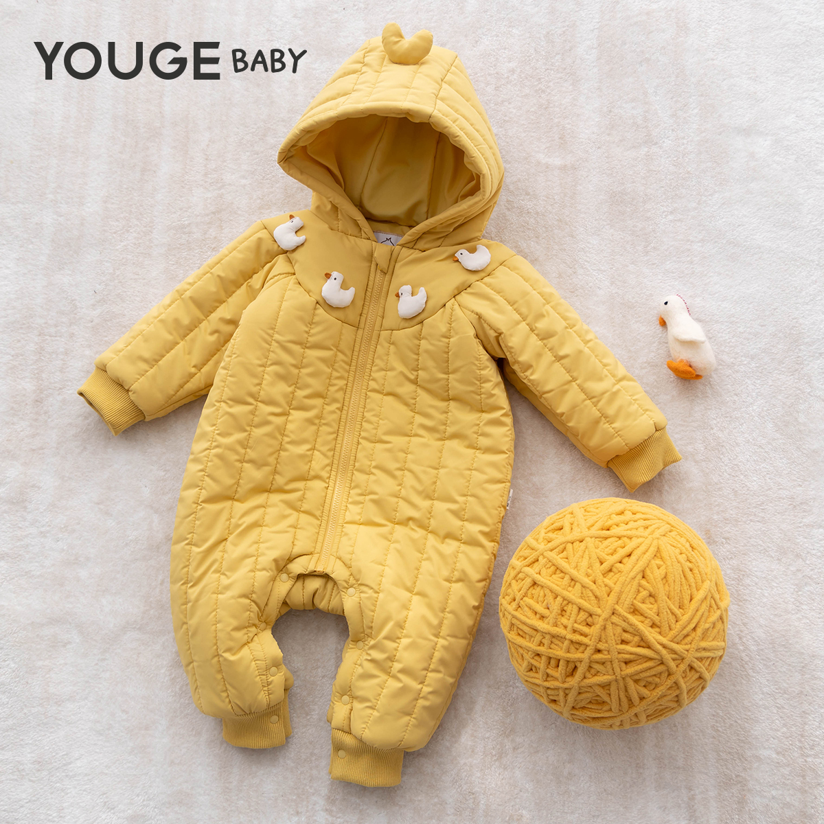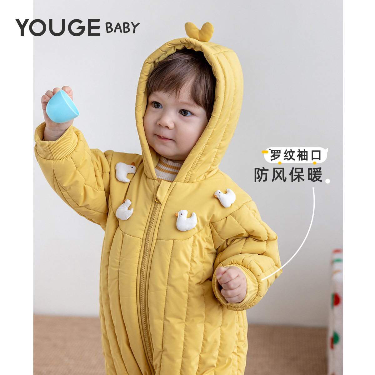 保暖连帽夹棉爬服新生儿防风宽松连体衣 新款 YOUGE幼歌 婴幼儿冬季