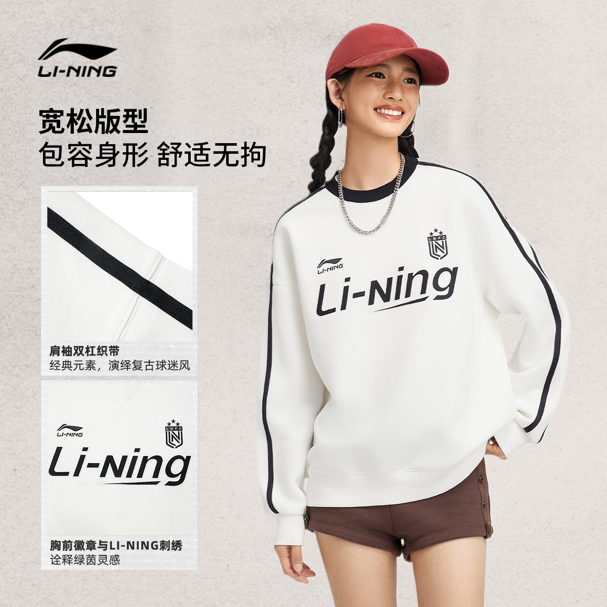 加绒加厚宽松早秋运动上衣男士 李宁卫衣女秋冬新款 情侣圆领套头衫