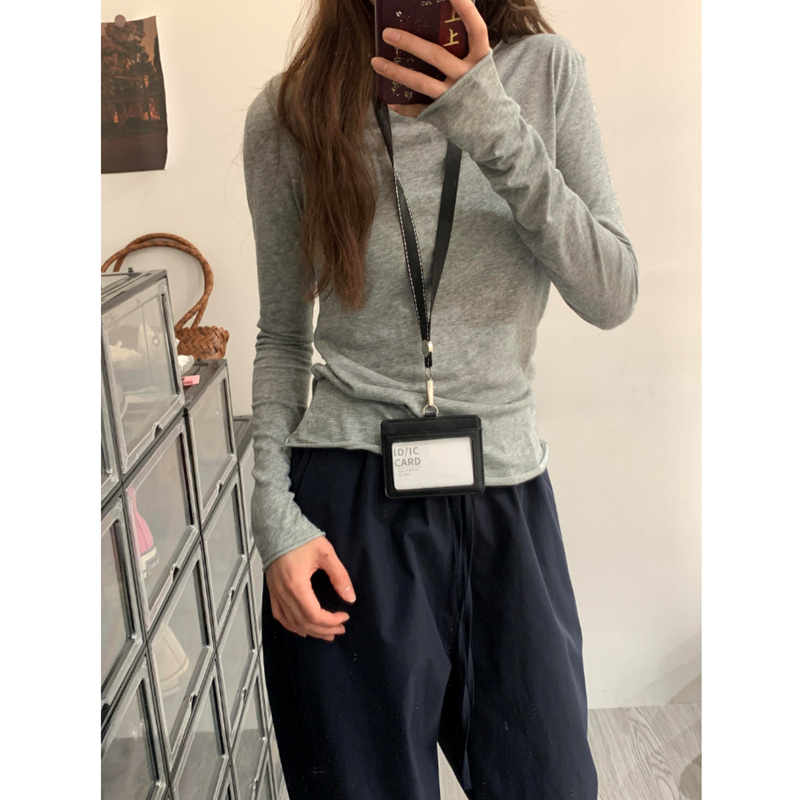 修身 内搭打底衫 显瘦上衣 t恤女2025春秋冬季 韩系灰色正肩卷边长袖