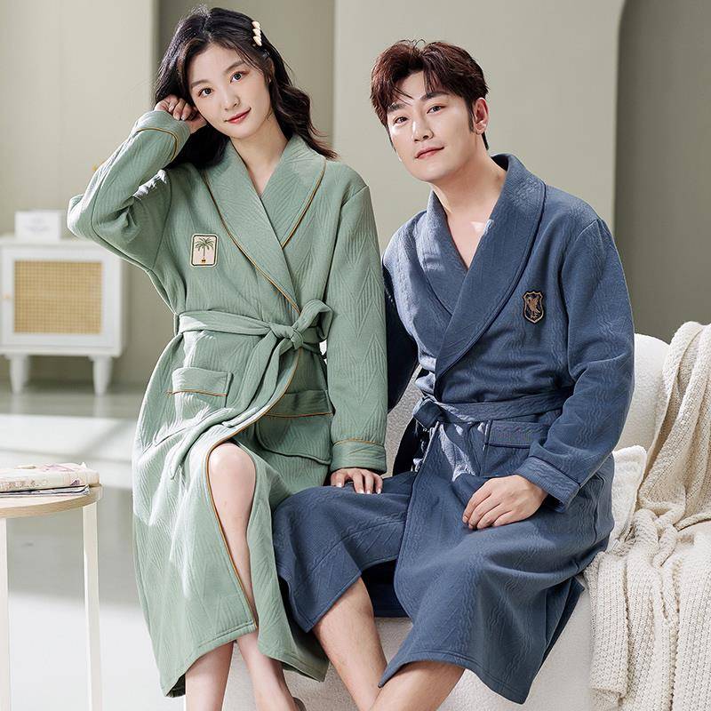 睡袍男士 加厚中长款 浴袍浴衣1009c 情侣睡衣女秋季 秋冬新款