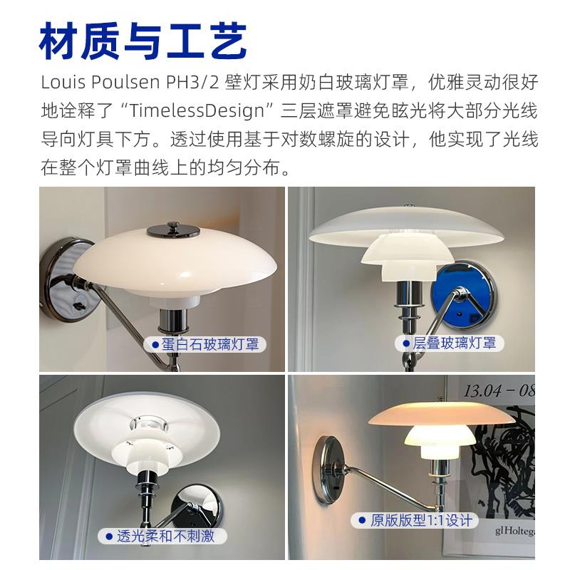 丹麦PH3 2玻璃壁灯简约设计师卧室氛围床头灯创意过道走廊照明灯