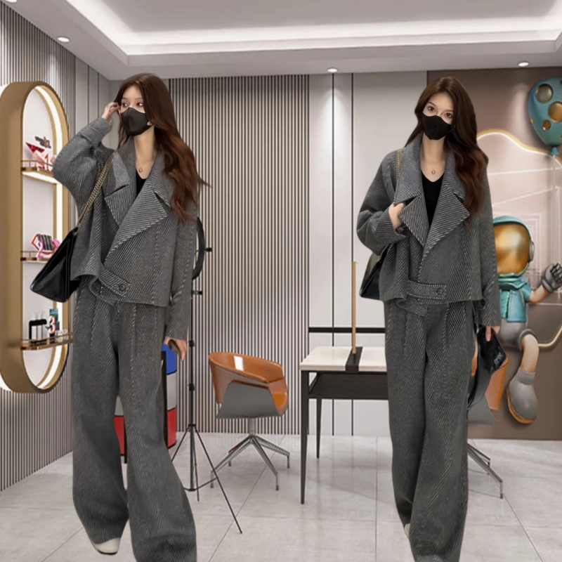 套装 阔腿裤 女冬季 高级感潮流洋气气质名媛百搭外套 新款 高档时尚