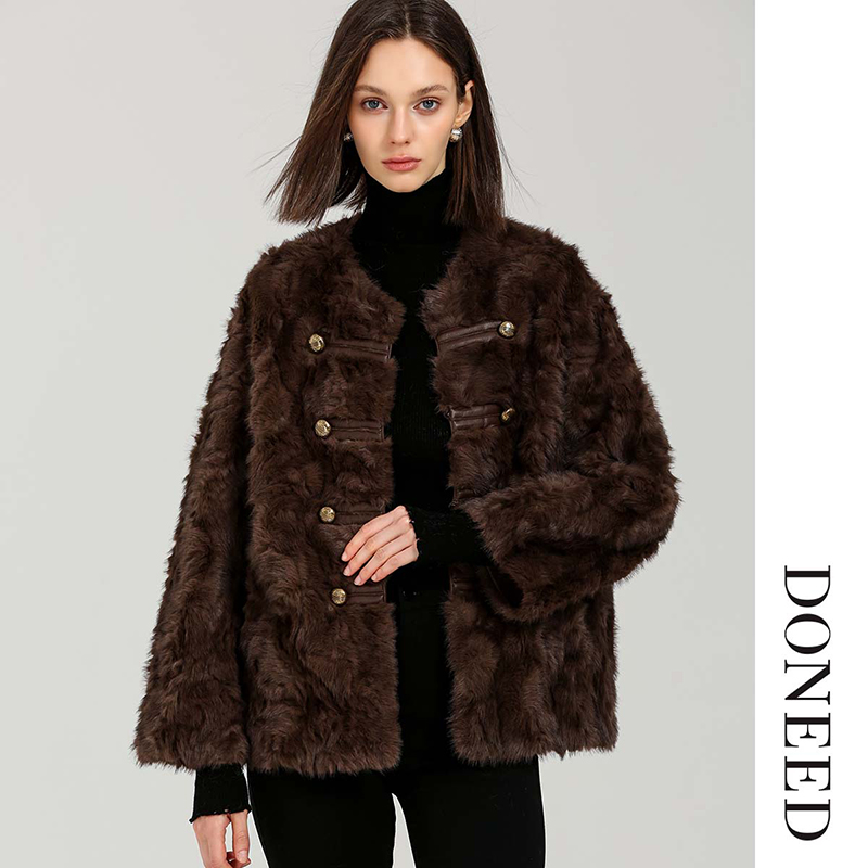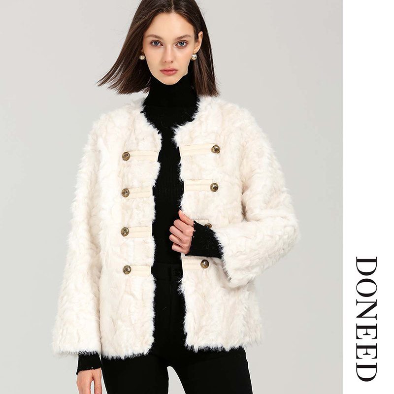 外套女 优雅复古气质圆领仿皮毛一体高级感开衫 DONEED冬款 时尚