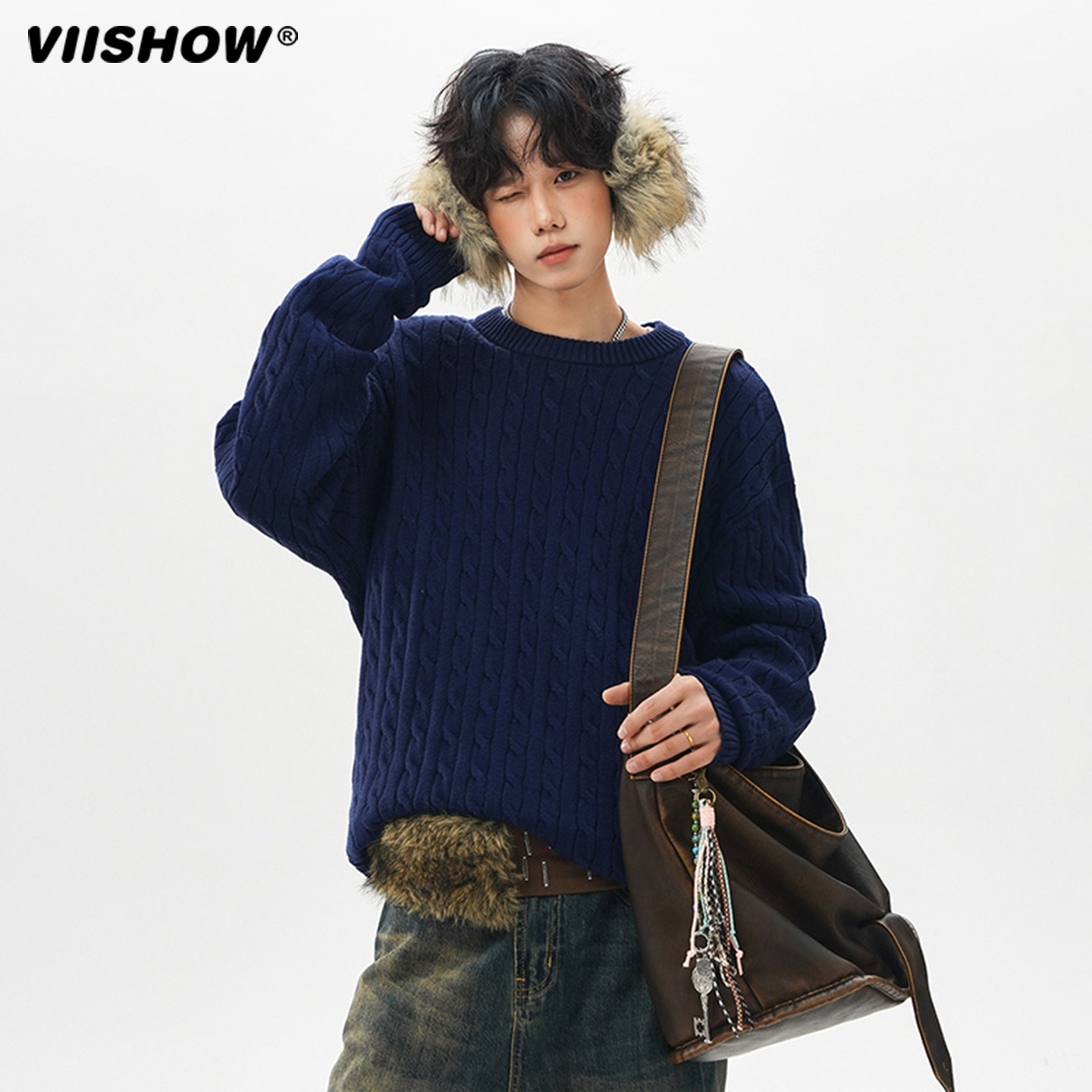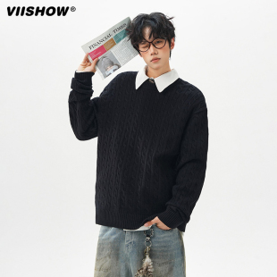 潮牌复古纯色针织衫 V37美式 秋季 毛衣男款 外套 慵懒风chic纽扣开衫