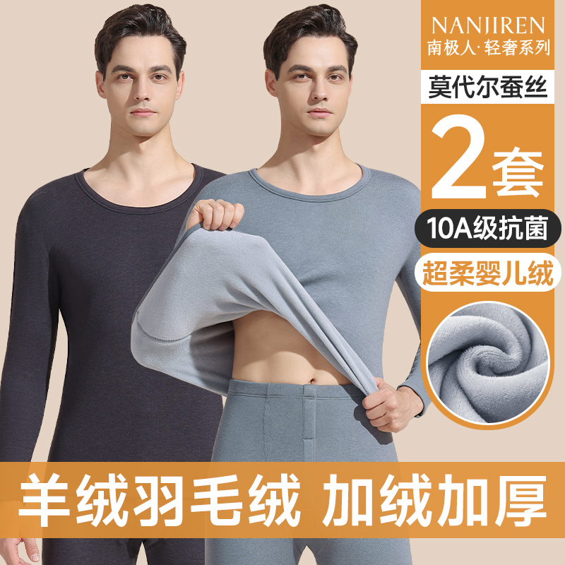 德绒羊绒发热防寒冬季 雅鹿保暖内衣男士 男款 套装 加绒加厚秋衣秋裤