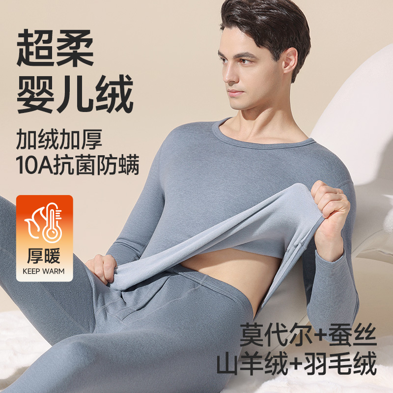 秋衣秋裤 2025新款 磨毛加厚加绒 保暖内衣套装 海澜之家小火AIR8男士