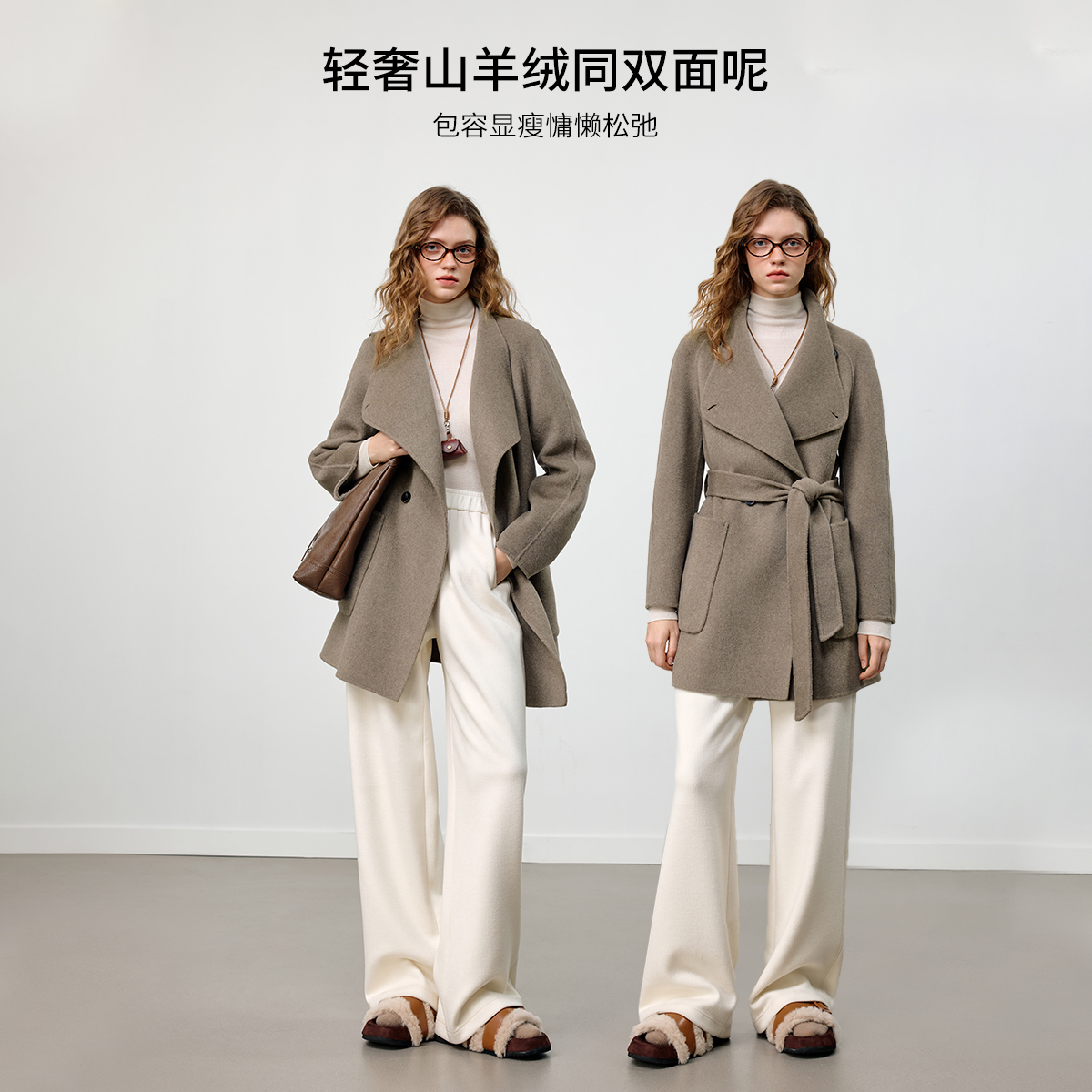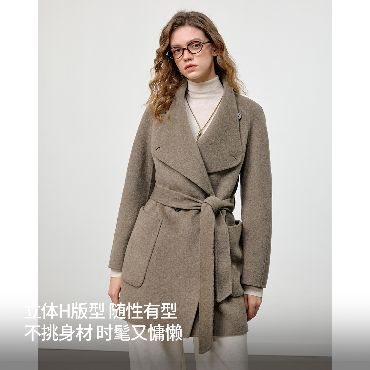圆领大衣女小个子气质毛呢外套 高端羊毛双面呢短款 2025年春季 新款