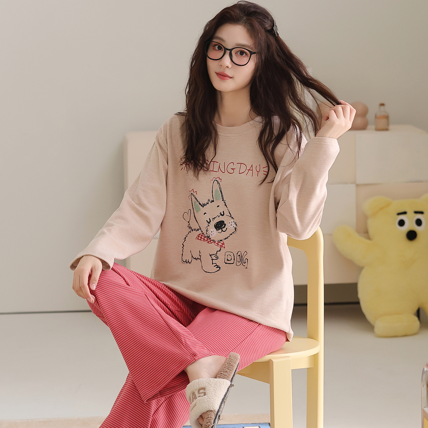 纯棉长袖 家居服套装 春秋款 夏2025年新款 冬 全棉秋冬开衫 睡衣女秋季