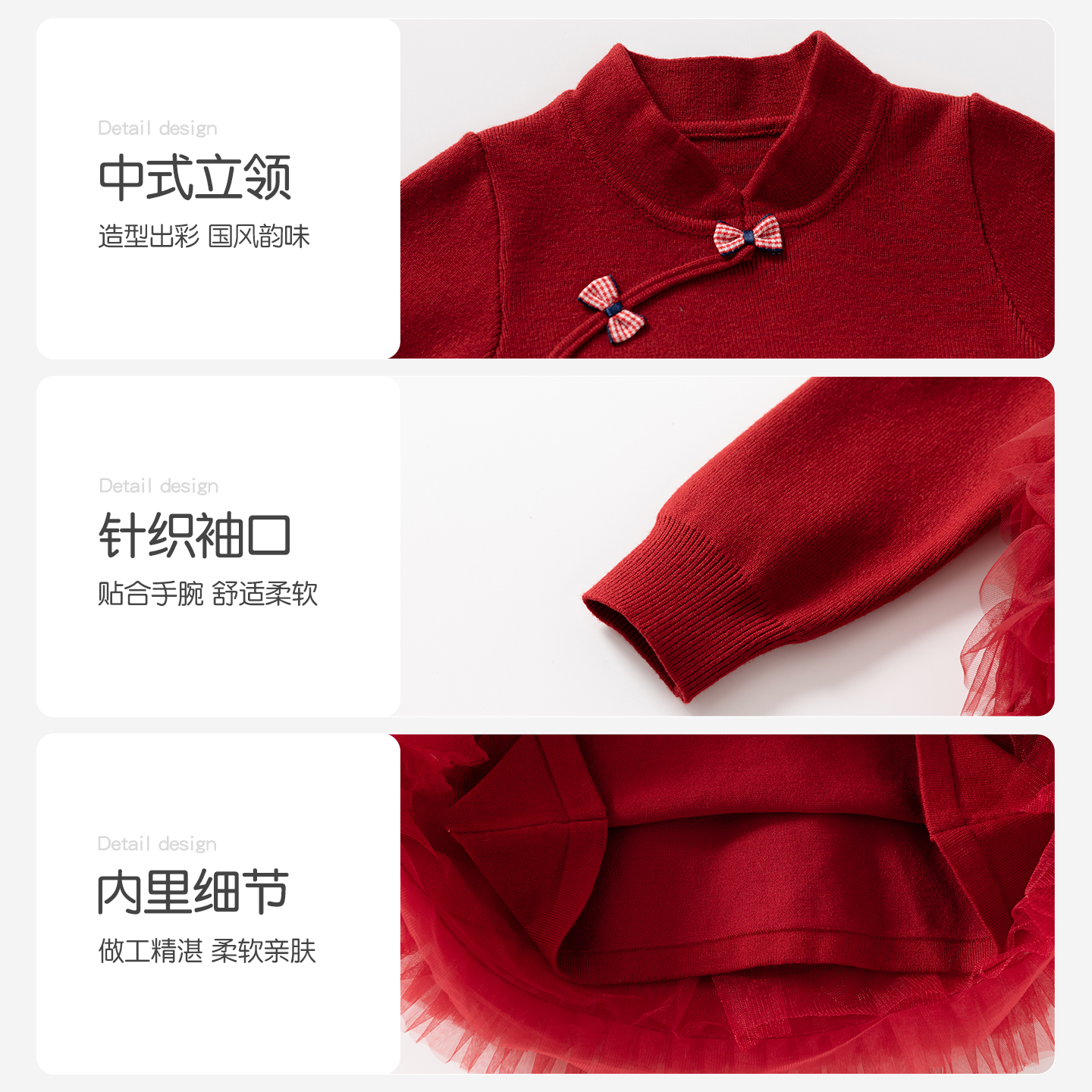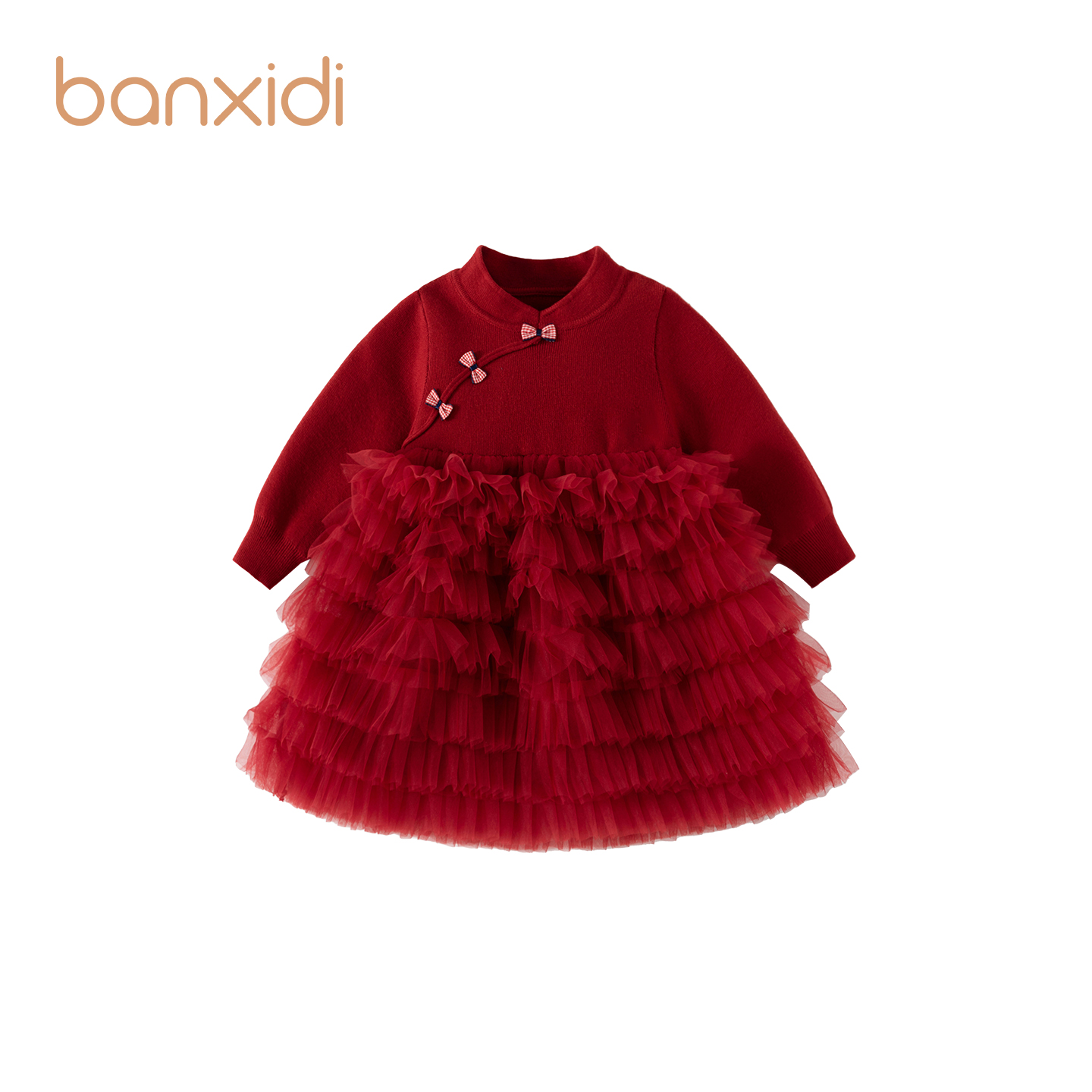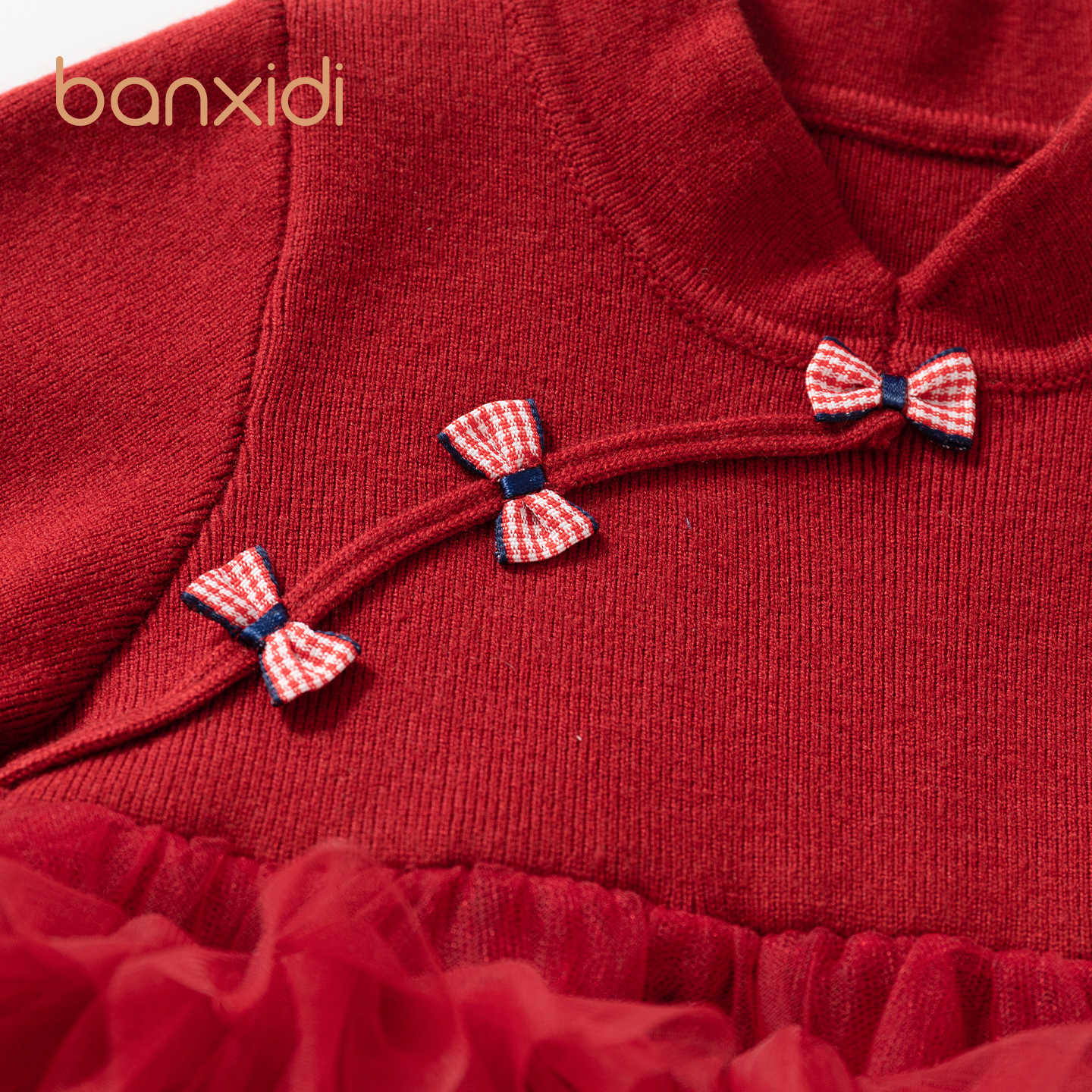 宝宝周岁礼服 儿童毛衣裙子秋冬款 Banxidi女童连衣裙冬装 2025新款
