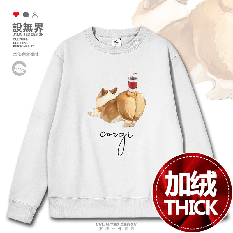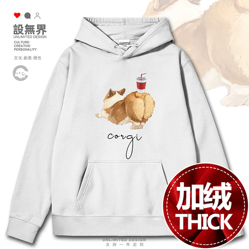 日系可爱柯基小狗翘臀顶汽水趣味个性 无界 连帽卫衣男女潮0017设