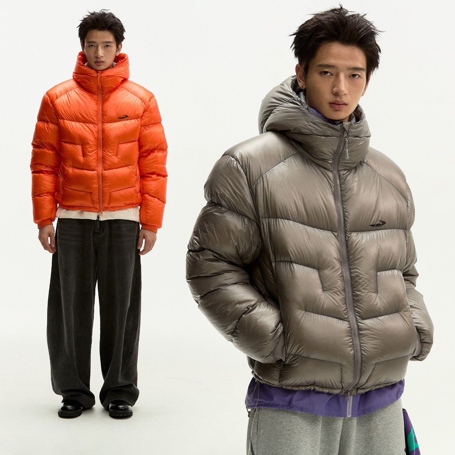 森马羽绒服男连帽面包服亮面三防抗静电外套发热保暖2025新款 冬装