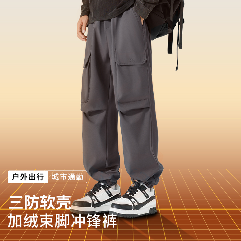 防风白色冲锋长裤 骆驼工装 户外登山运动裤 男女秋冬防泼水休闲裤 裤