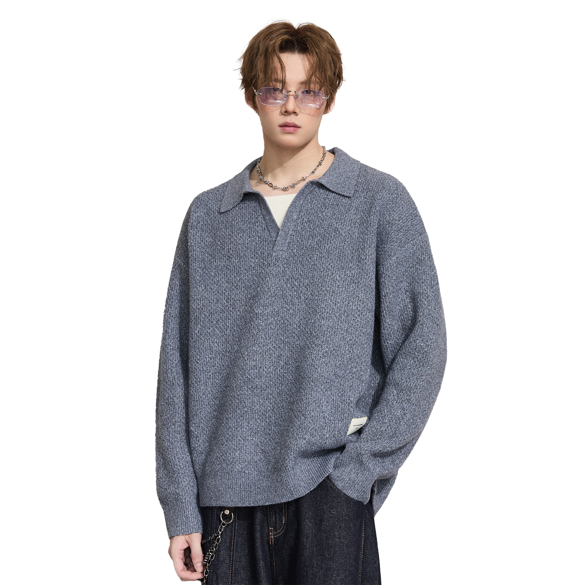 ALLIN 慵懒情侣外套 假两件v领翻领毛衣男秋冬cleanfit高级针织衫
