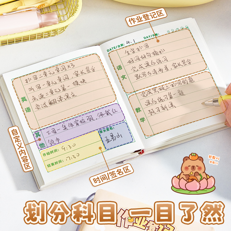 咔巴熊作业登记本学生记作业本一年级四三二年级小学生专用初中学习备忘录家校联系记事本子小学开学文具用品