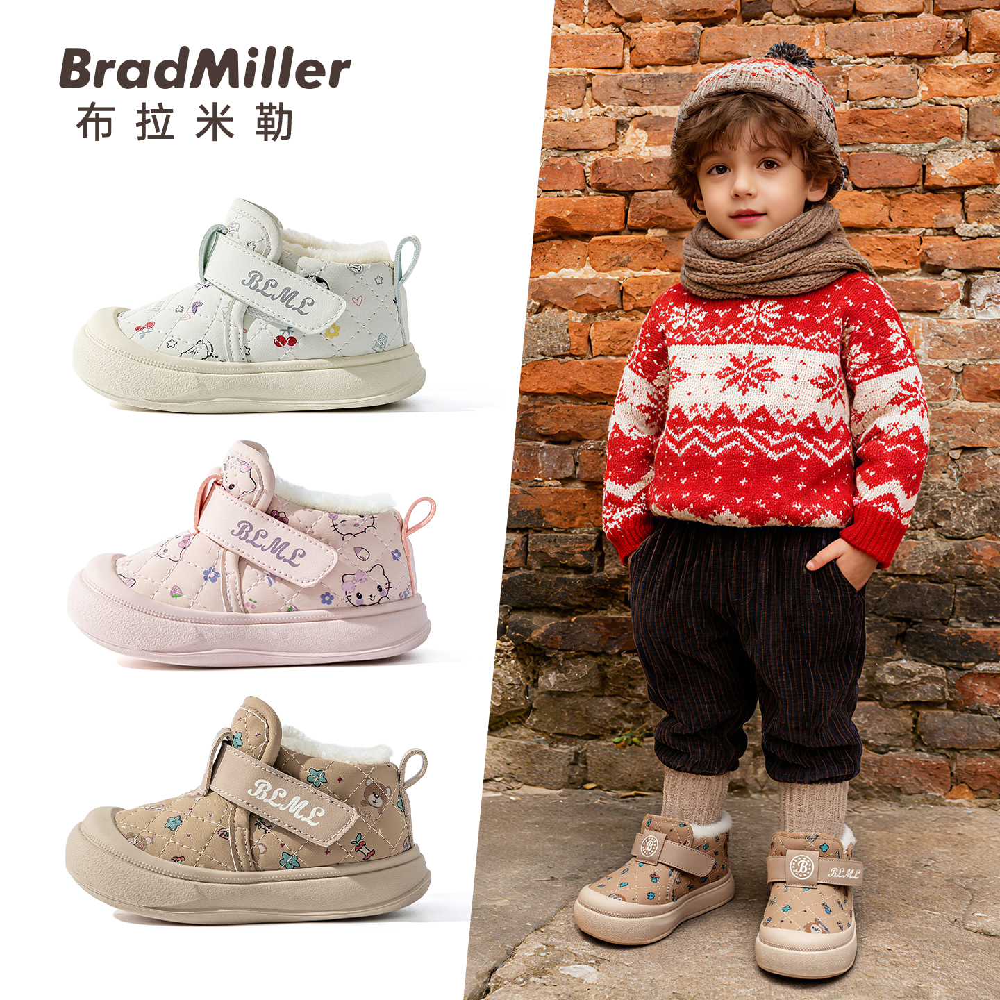 宝宝中大童亲子毛拖鞋 室内防滑保暖棉鞋 包跟男女童冬季 儿童棉拖鞋