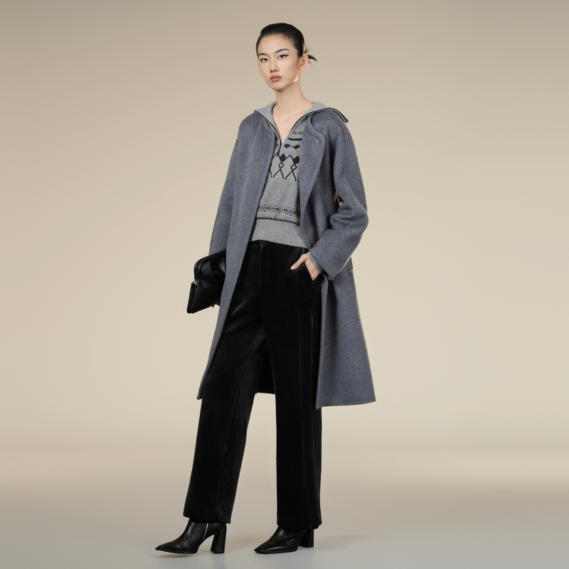 高级宽松bf慵懒垂感直筒加绒休闲阔腿裤 2025新款 子女春秋季 糯米裤