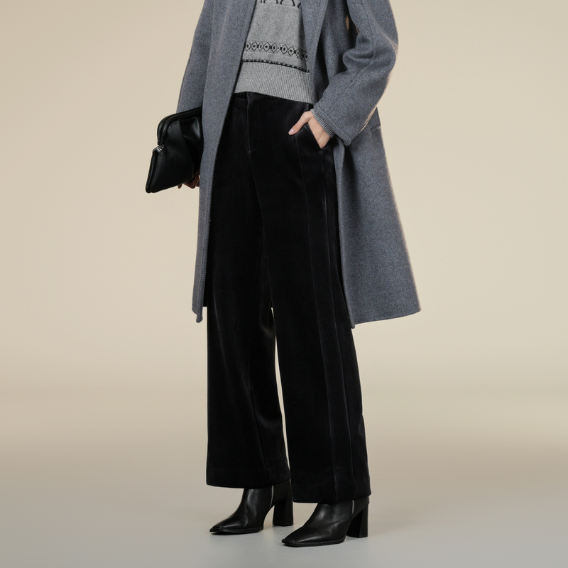 女春秋新款 休闲直筒慵懒松弛感裤 高腰垂感窄版 裤 子 西装 黑色阔腿裤