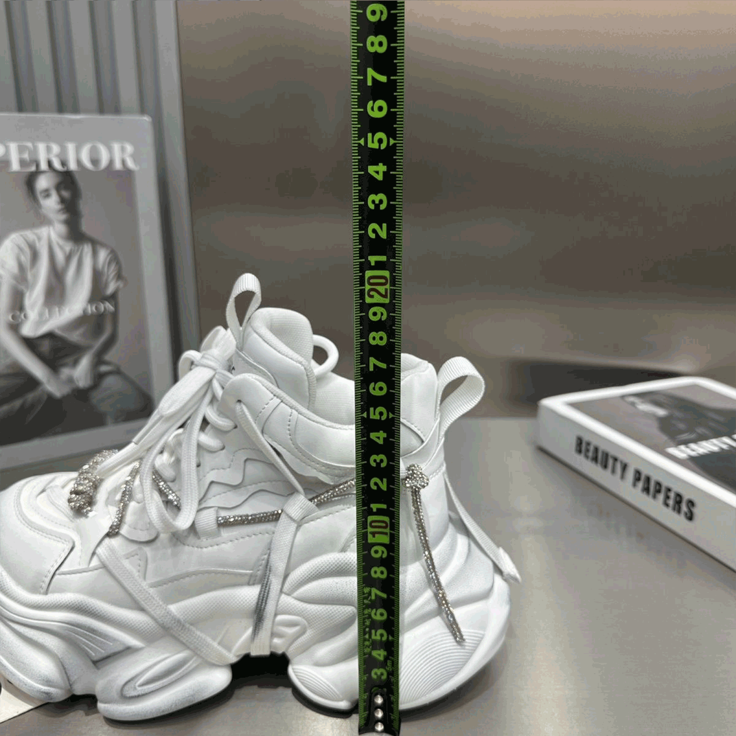厚底高帮加绒休闲运动鞋 张凌赫同款 新款 女鞋 预 百丽蓝鲸银色老爹鞋