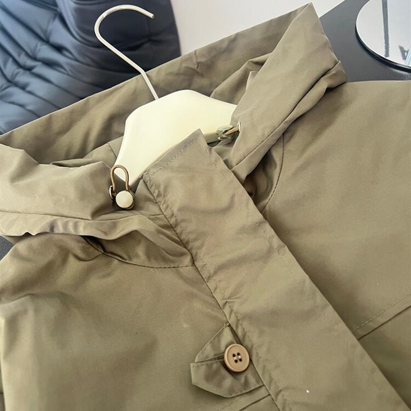 工装 胖MM宽松格子内衬短款 大码 好货韩系连帽风衣外套女2025年秋季
