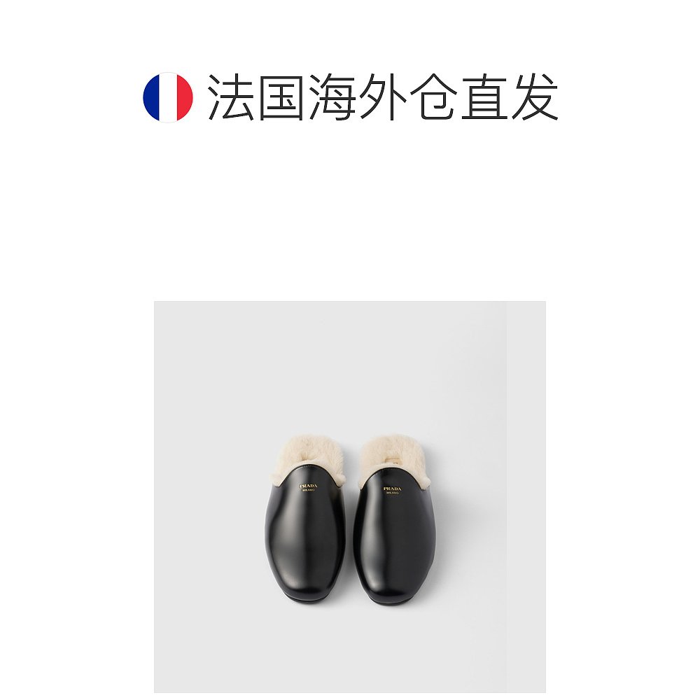 拖鞋 女鞋 女士黑色小牛皮字母标识穆勒鞋 自营欧洲直邮Prada普拉达
