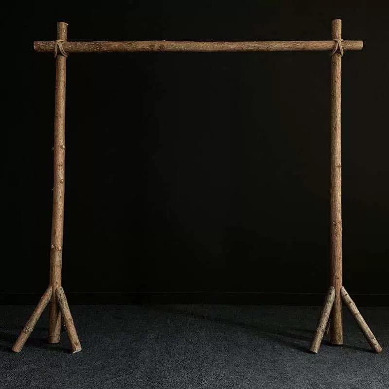 森系婚庆木桩拱门户外原木头花木架草坪背景装 饰节日求婚草坪布置
