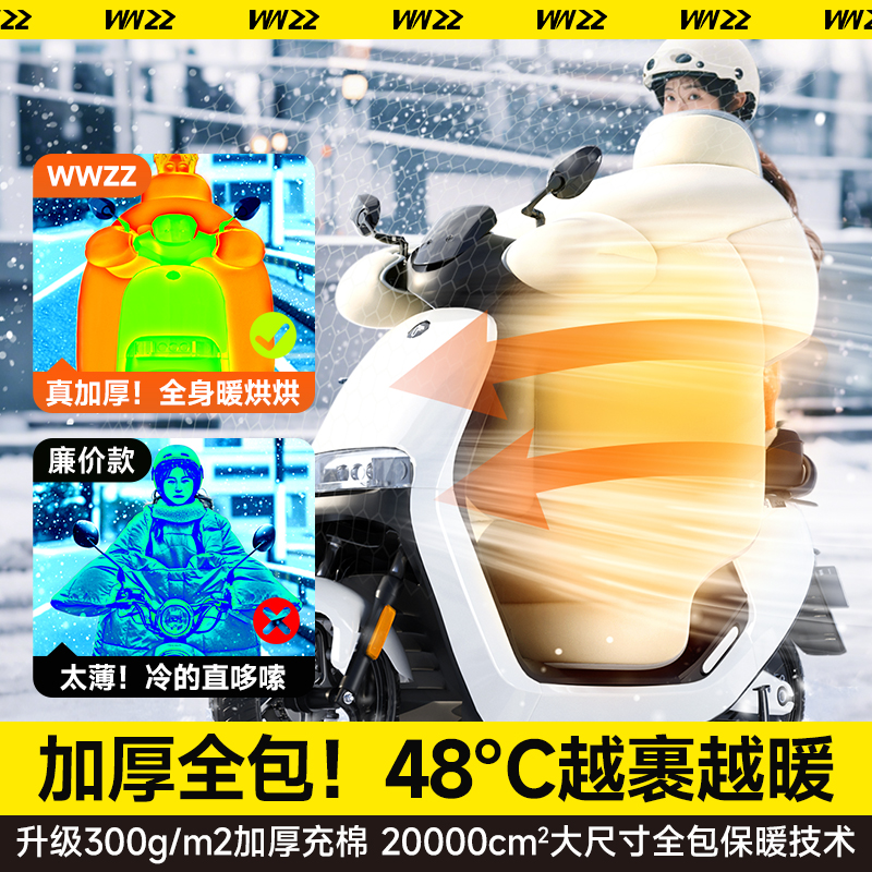 通用 电瓶摩托防风防水罩四季 电动车挡风被冬季 加绒加厚全包斗篷式