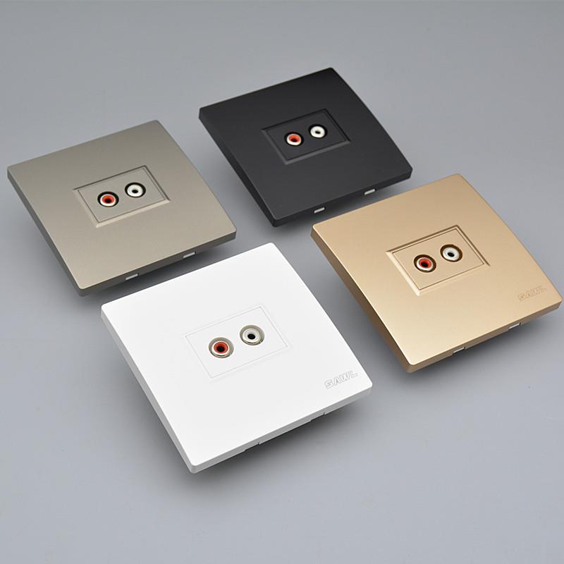 SAWL红白双莲花头音频插座RCA免焊墙插家用86型多媒体AV音频面板