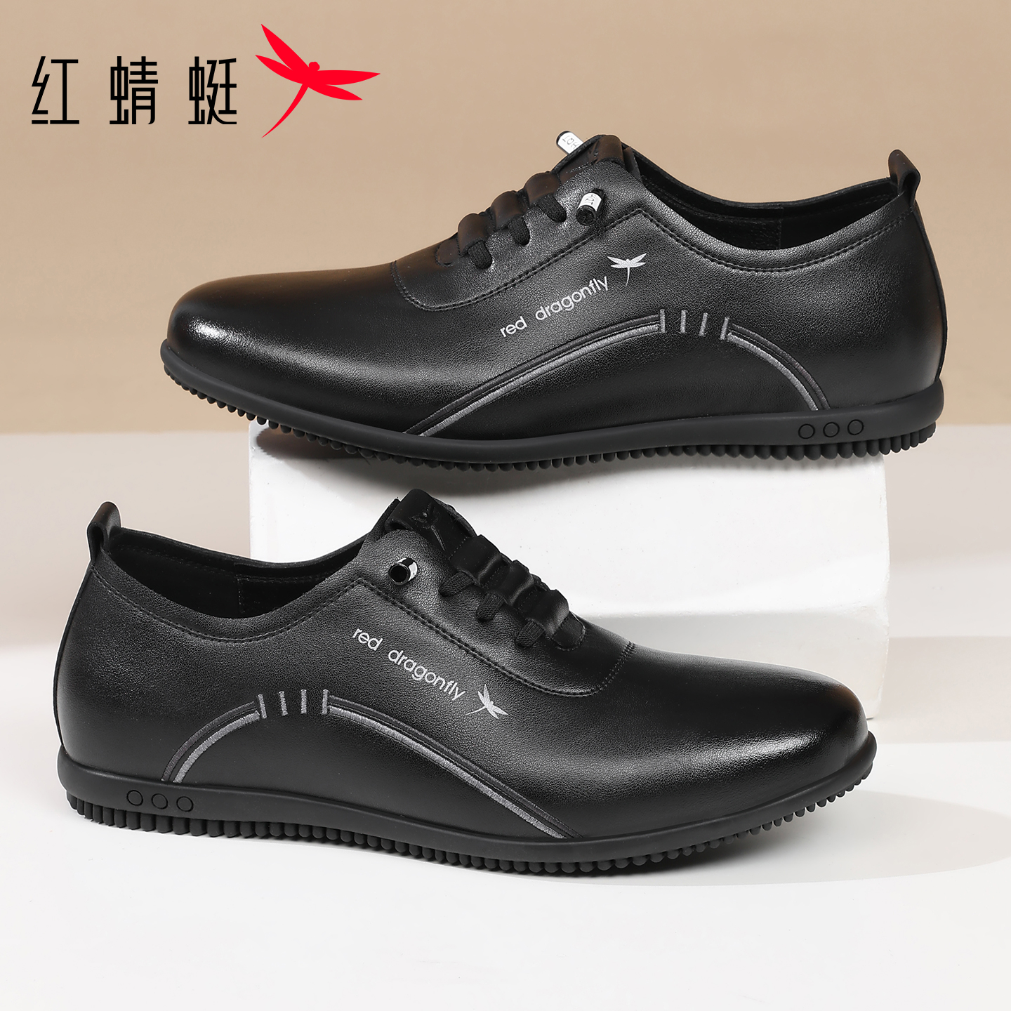 运动鞋 男士 休闲皮鞋 真皮轻便软底黑色鞋 红蜻蜓男鞋 子正品 秋冬新款
