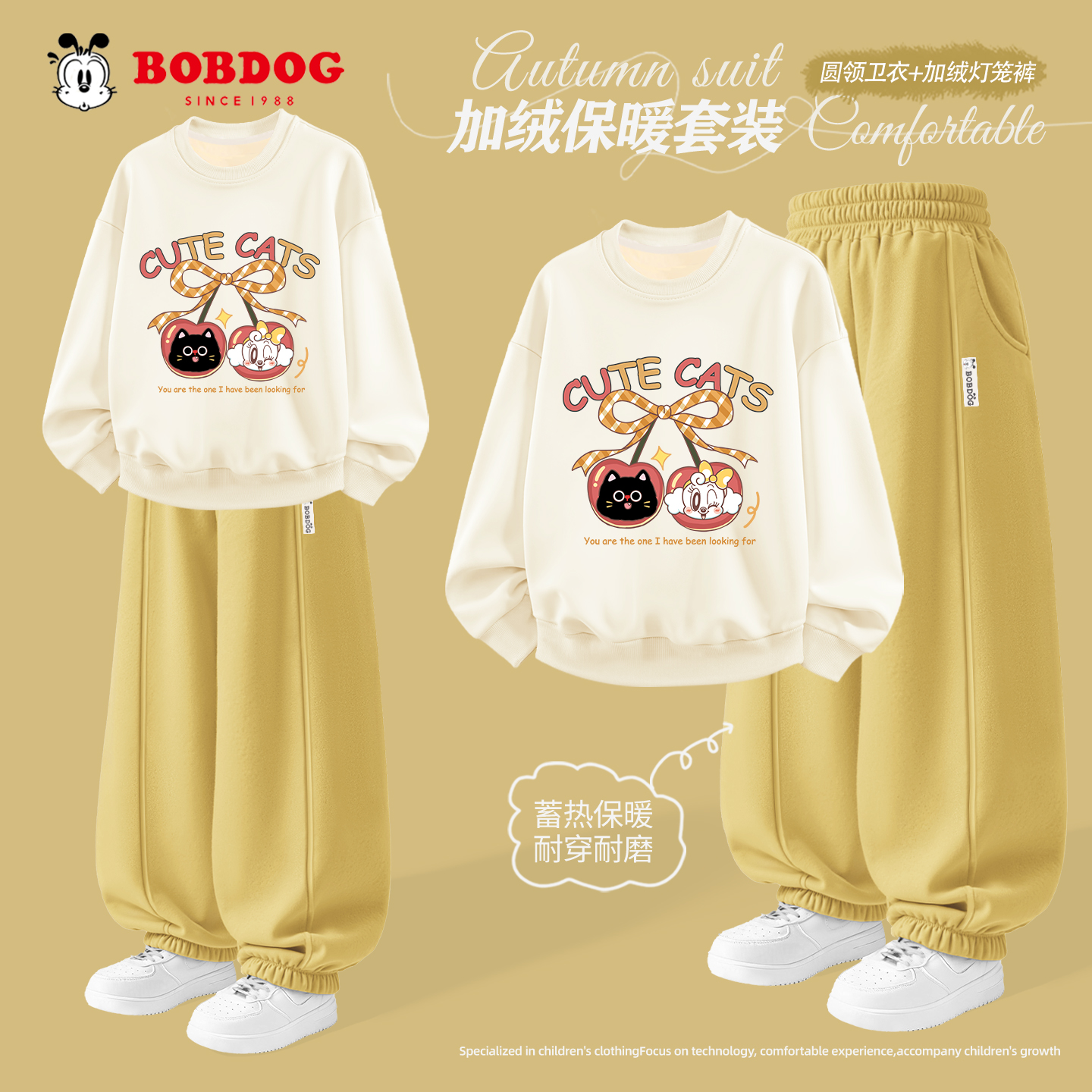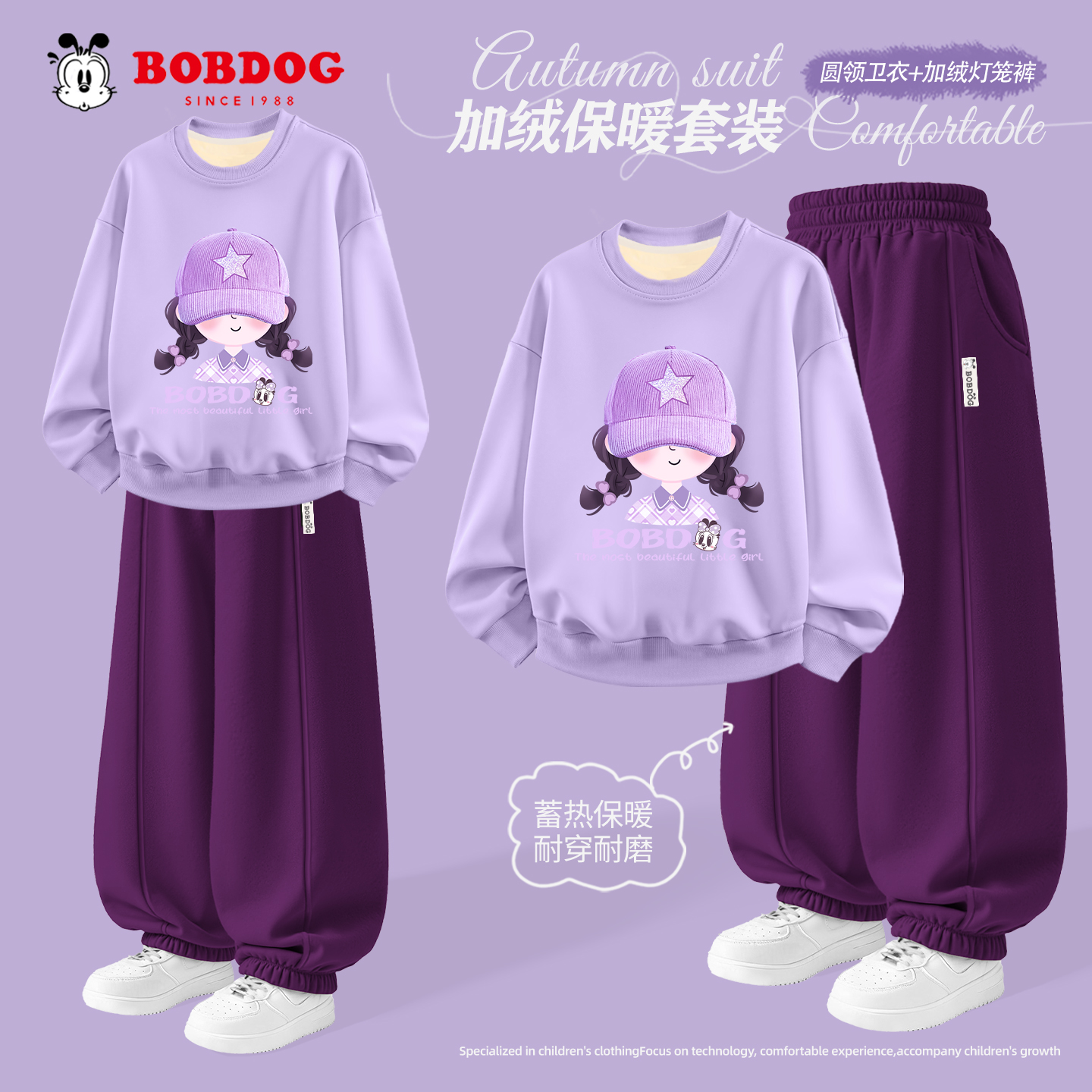 女宝加绒卫衣可爱儿童一体绒休闲裤 2025新款 秋冬装 巴布豆女童套装