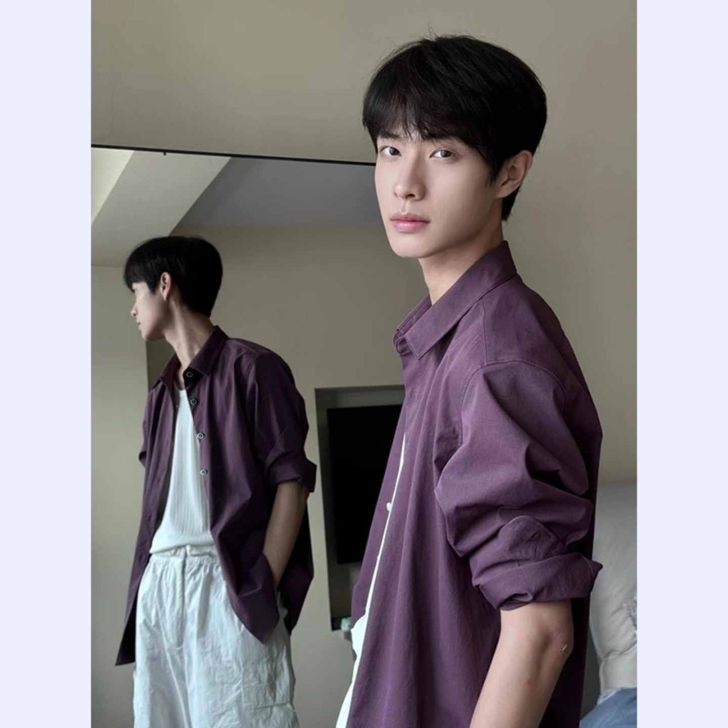 vintage外套慵懒松弛感衬衣 男韩系少年感穿搭美式 绝绝紫长袖 衬衫
