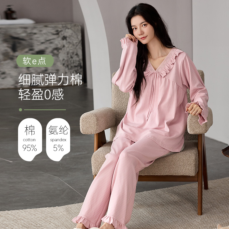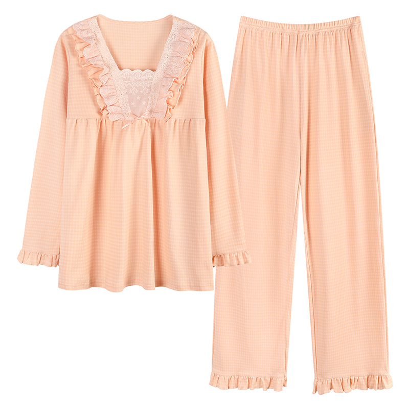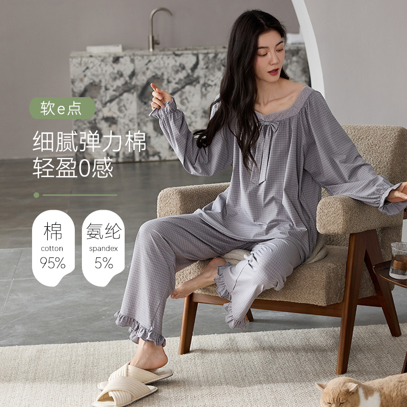 Gukoo 果壳睡衣女春秋格子简约女士全棉梭织格纹家居服套装