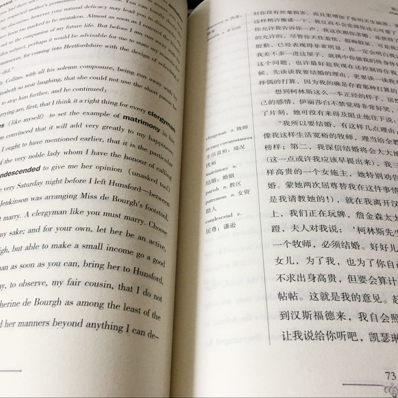 中英双语世界文学名著奥斯丁英汉互译 英文原版 傲慢与偏见正版 词巩固短语训练英语原文阅读理解高中生 原著完整版