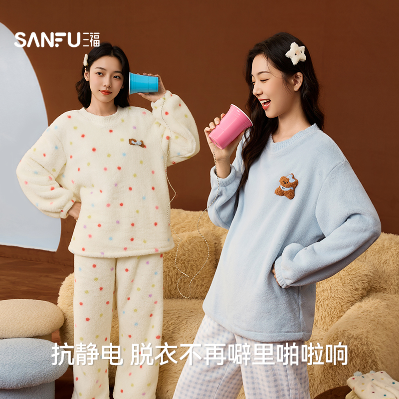 维密宅度假系列奶舒绒睡衣轻柔抗静电保暖家居服套装 女可外穿