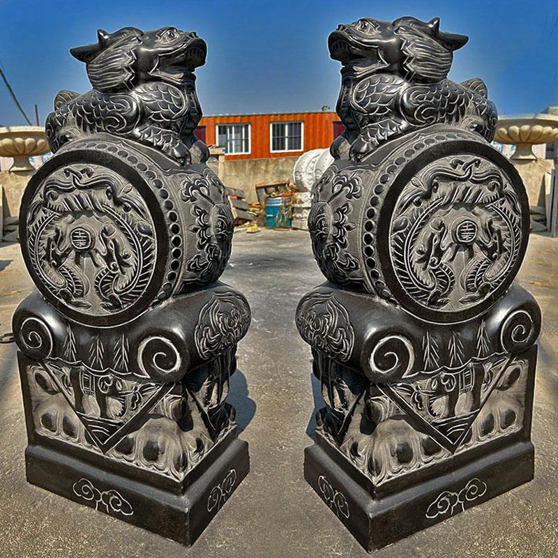 石雕门墩一对抱鼓石青石仿古貔貅麒麟狮子象庭院门口家用石鼓门当