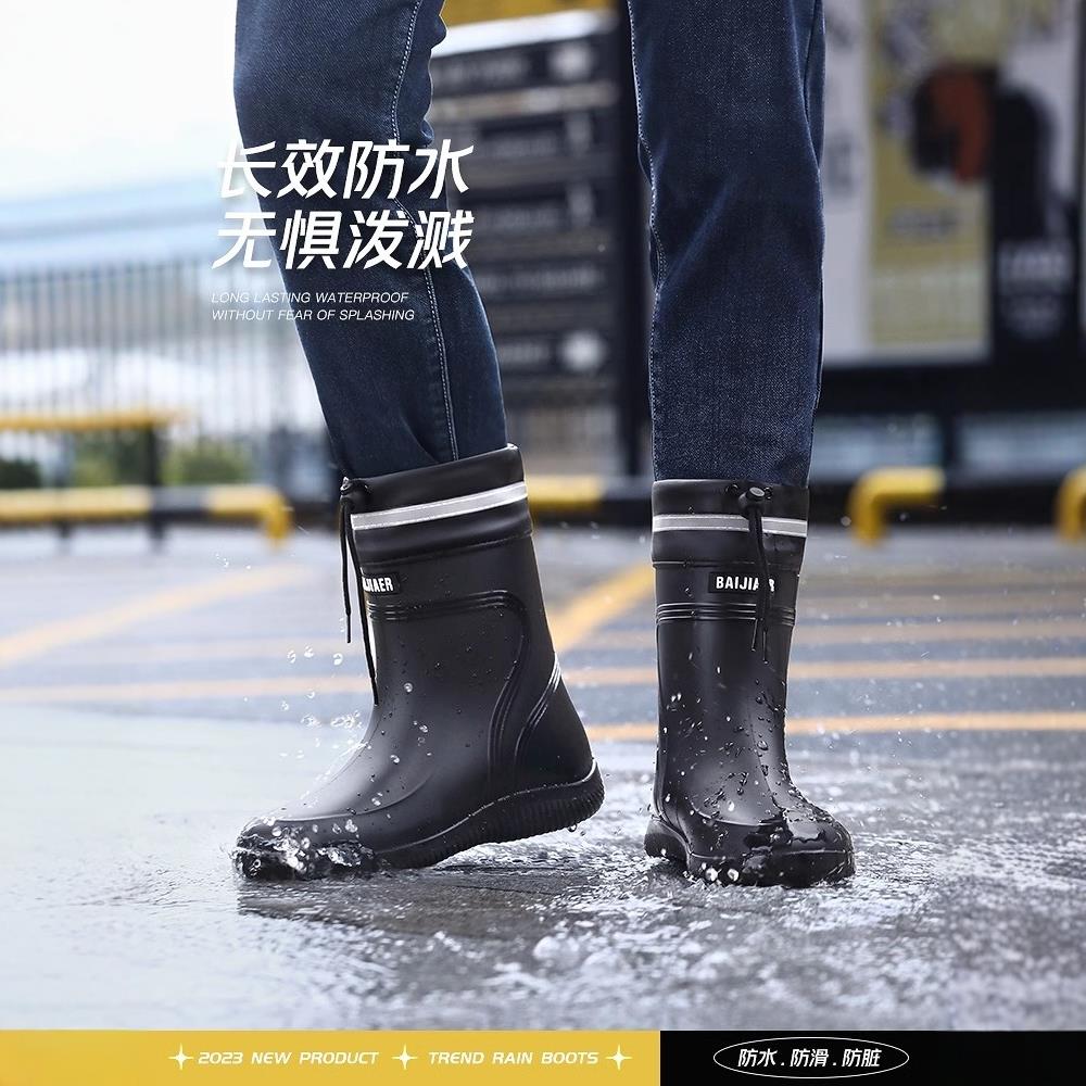 防臭高加厚成人胶鞋 德国水鞋 硅胶防滑防水高长短筒大码 雨鞋 靴 男款