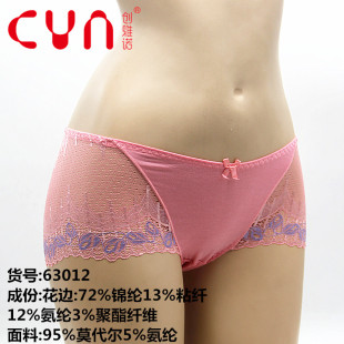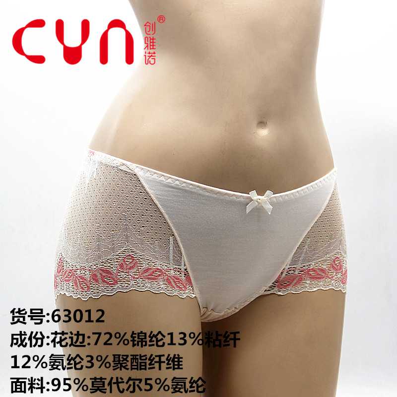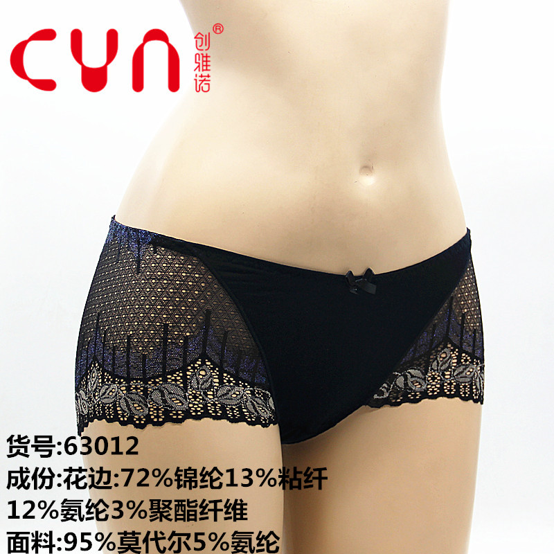 潮裤 青年短裤 条 无痕内裤 创雅诺63012女士莫代尔性感蕾丝小平角裤