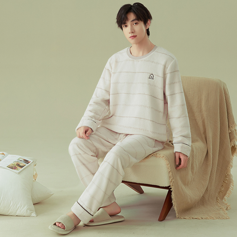 大码 珊瑚绒家居服男士 宽松男冬 加绒加厚法兰绒睡衣男秋冬套装 冬季