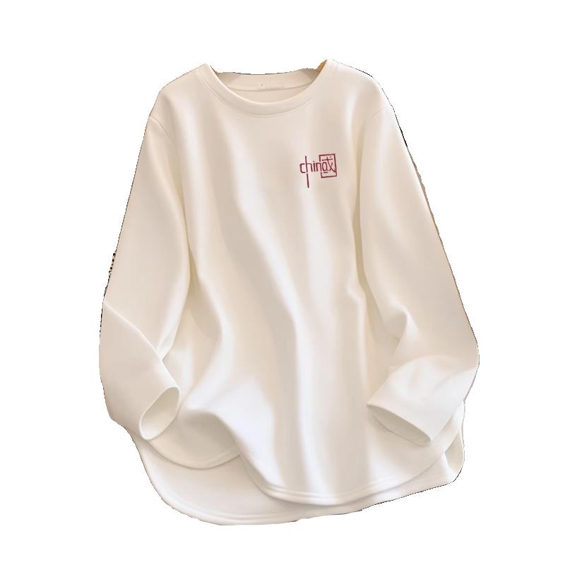 100%纯棉长袖 宽松遮肉显瘦套头外穿拼接薄卫衣E T恤上衣女秋冬韩版