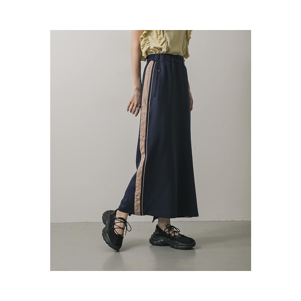 MOCO半身裙高腰精裁黑色压褶A字裙附腰带MBE1SKTT10