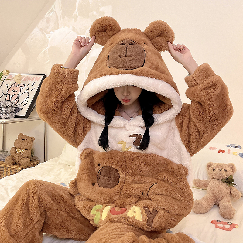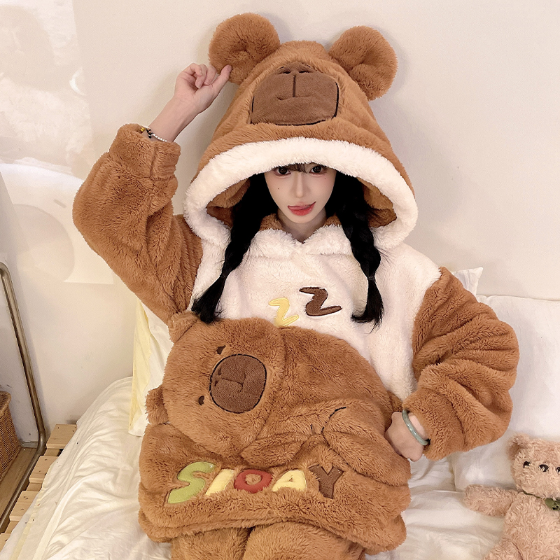 半边绒保暖男家居服套装 迪士尼新款 果壳情侣睡衣女冬季 Gukoo