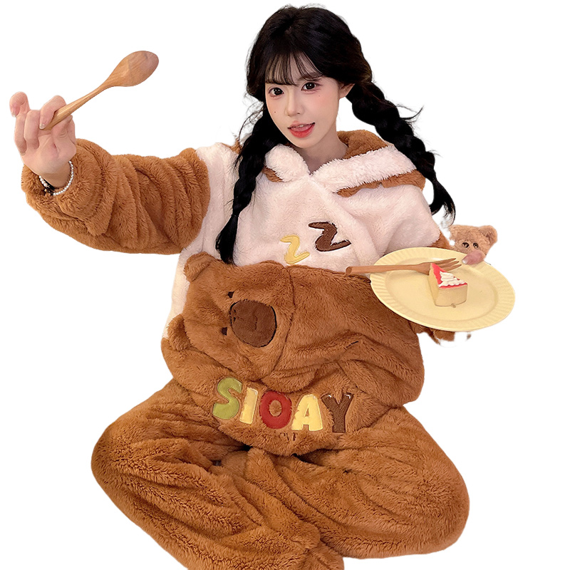 维密宅度假系列奶舒绒睡衣轻柔抗静电保暖家居服套装 女可外穿